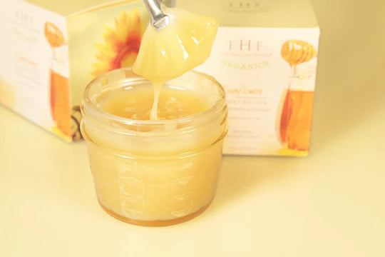 This rich, creamy honey-butter is whipped from golden organic date honey and glistening organic sunflower seed oil for a silky soft feel that deeply nourishes even the driest of skin.