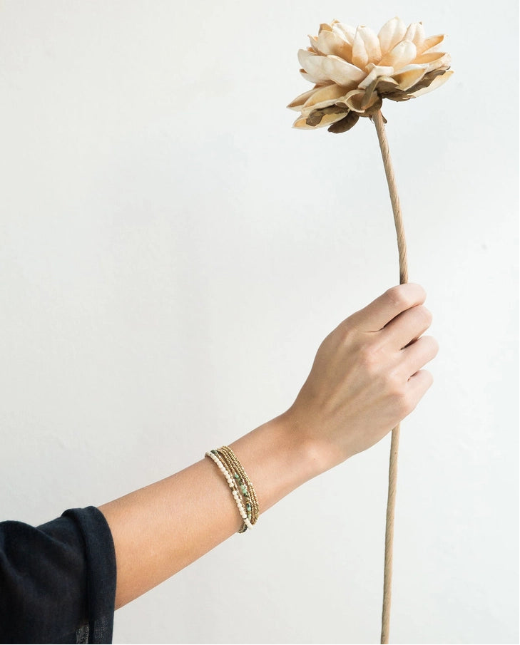 Bracelet becomes a necklace & Ta-Da! Faceted gemstones mix with tiny geometric metal beads to create a subtle and magical piece. Wraps as a bracelet 3 times or wear as a single strand necklace.