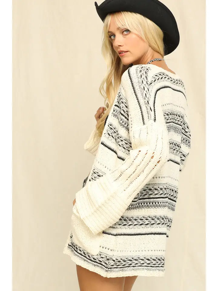 This slouchy drop-shoulder cardigan features textured stripes that add depth and interest to its relaxed silhouette. Designed for effortless layering, its roomy fit and soft fabric provide comfort and versatility for any casual or refined look. Perfect for transitioning between seasons, it combines style with cozy wearability.