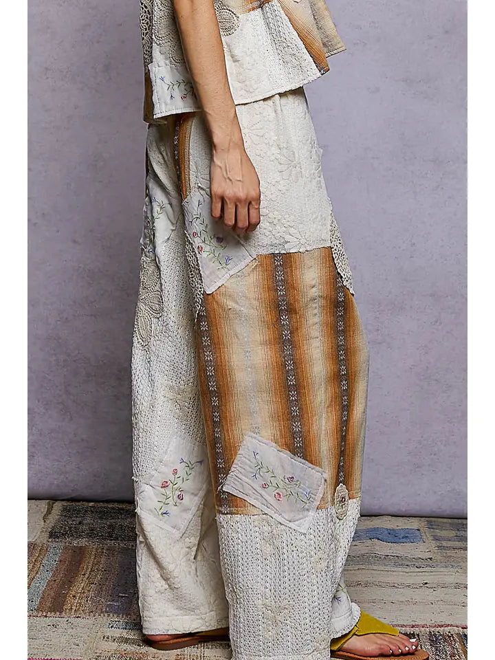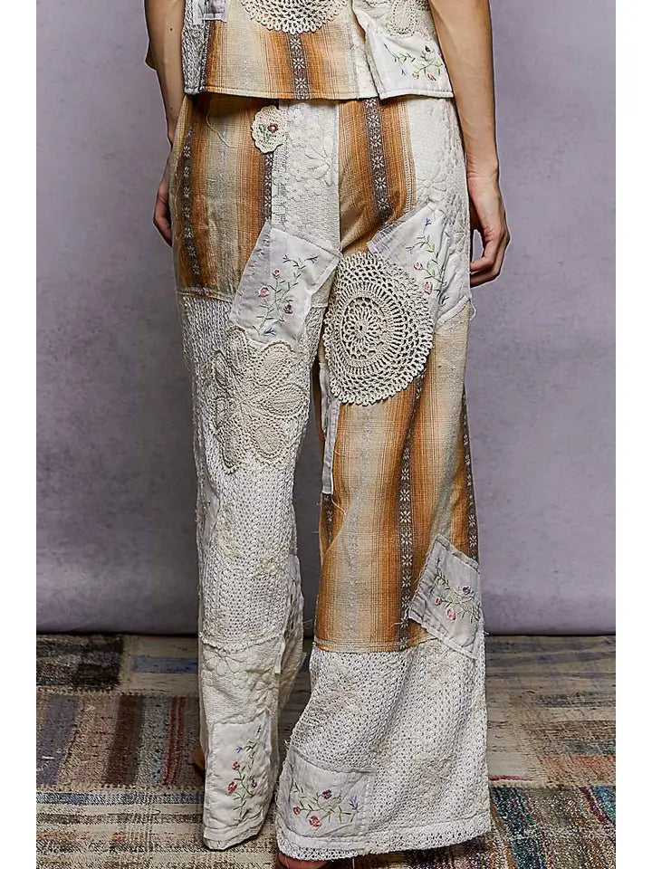 Bohemian Crochet Patches Embroidery shirt features a relaxed, comfortable fit crafted from soft woven fabric. Adorned with intricate crochet patches and embroidery details, this piece showcases a pointed solid pattern that adds visual interest and texture. Perfect for those who love eclectic, artisanal style with an effortless vibe. Designed for easy movement and all-day wear, they pair seamlessly with crop tops, oversized blouses, or fitted tees. A versatile staple for anyone seeking laid-back style with artisanal flair.
